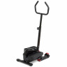 Эллептик премиальной серии DFC E5800P идеально подходит для домашнего использования: поддержания тела в тонусе, снижения веса и кардио-нагрузки. Выполнен в классическом чёрном цвете. Внешний вид тренажёра лаконичный и стильный: чёрный матовый цвет, сглаженные углы, строгие линии. Особенности тренажёра Автономная работа Бесшумная генераторная система нагрузки позволяет регулировать сложность на 24-х уровнях с консоли или прямо с помощью поручней. Встроенный генератор с напряжением 250 вольт позволяет тренажёру работать даже после прекращения подачи электроэнергии. Надёжность конструкции позволяет выдерживать до 150 килограмм нагрузки. Тренажёр оснащён компенсаторами неровности пола и транспортировочными роликами с рукояткой для удобного перемещения по дому. Регулировка угла Угол наклона регулируется при помощи рукоятки рампы в 3-х положениях — от 0 до 15 градусов. Возьмитесь за рукоятку, зажмите кнопку и потяните вверх до щелчка. Меняя угла наклона, вы регулируете и общую нагрузку во время тренировки. Чем выше положение педалей, тем больше напряжения создаётся в ногах, появляется чувство подъёма на возвышенность. Продуманность деталей На мониторе LCD 7’ с синей подсветкой отображаются пульс, время, скорость, затраченные калории, пройденное расстояние. На консоли можно выбрать одну из 12 программ тренировок или задать свою, с ручной настройкой. 2 динамика и разъемы USB и MP3 — то, что нужно для комфортных занятий. Слушайте музыку, смотрите видео или заряжайте ваш гаджет. На поручнях тренажёра установлены сенсорные датчики пульса, что позволяет постоянно отслеживать сердцебиение. На этих же поручнях есть кнопки регулировки нагрузки и угла налона. Имеются подставки под бутылку и планшет. Встроенный вентилятор, запускаемый с консоли, сделает тренировку комфортной даже в жаркий летний день. Естественность движений Благодаря сочетанию длины шага 50,8 см с расстоянием между педалями 2,54 см, обеспечивается естественность движений для комфорта и безопасности пользователя. Для предотвращения скольжения широкие педали оснащены рифлёным покрытием и бортиками.