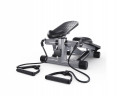Министеппер поворотный с поручнем DFC SOOZIER — это компактный и функциональный тренажёр для домашних тренировок, который помогает поддерживать отличную физическую форму без необходимости посещения спортзала. Поворотная конструкция обеспечивает естественные и плавные движения во время тренировки, включая в работу мышцы корпуса, ягодиц и бёдер, усиливая эффект от занятий. Модель рассчитана на пользователей весом до 100 кг и оснащена гидравлической системой нагрузки с взаимозависимым ходом педалей, что гарантирует равномерное распределение усилий. Регулировка нагрузки осуществляется механически — поворотом ручки регулятора, что позволяет подобрать оптимальный уровень сопротивления. Монохромный LCD-дисплей отображает основные параметры тренировки: время, количество шагов, расход калорий, темп и функцию сканирования. Это помогает контролировать интенсивность занятий и отслеживать прогресс. Для работы дисплея используется 1 батарейка типа AAA (1.5 В) — в комплект не входит. Удобные педали размером 33,5 х 14 см с противоскользящим покрытием обеспечивают надёжное сцепление и устойчивость, а небольшое расстояние между педалями (7 см) способствует правильному положению ног и снижает нагрузку на суставы. Поручень обеспечивает дополнительную поддержку и безопасность во время занятий. Его высота регулируется в трёх уровнях с помощью удобного фиксатора, что позволяет адаптировать тренажёр под рост пользователя. Расстояние между поручнями — 42,5 см. В комплект входят эспандеры длиной 78 см, которые позволяют разнообразить тренировку и проработать мышцы рук, плеч и спины. Благодаря компактным размерам министеппер легко разместить даже в небольшой квартире. Современный черно-синий дизайн органично впишется в любой интерьер. Министеппер поворотный с поручнем DFC SOOZIER — идеальное решение для эффективных домашних тренировок, когда нужно укрепить мышцы, развить выносливость и улучшить общее самочувствие. Компактные размеры позволяют легко разместить его даже в небольшой квартире, а благодаря современному дизайну он гармонично впишется в любой интерьер. Гарантия на детали подверженные естественному износу в процессе эксплуатации — до 6 месяцев с момента установки тренажера при условии регулярного планового ТО. Важно: гарантия не распространяется на преждевременный износ из-за чрезмерной эксплуатации тренажера.