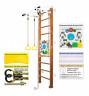 Классическая модель Helena Wall с детской развивающей игрушкой Busyboard. Пристенная шведская стенка Helena Wall Busyboard включает в себя набор из самых популярных навесных аксессуаров канат, гимнастические кольца, трапецию, а также детскую развивающую игрушку-бизиборд.