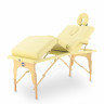 Это раскладной массажный стол с прорезью для лица. Его прочная и лёгкая конструкция построена на базе каркаса из дерева и системы тросов. Для снижения веса ножки стола выполнены из легкого алюминиевого сплава.